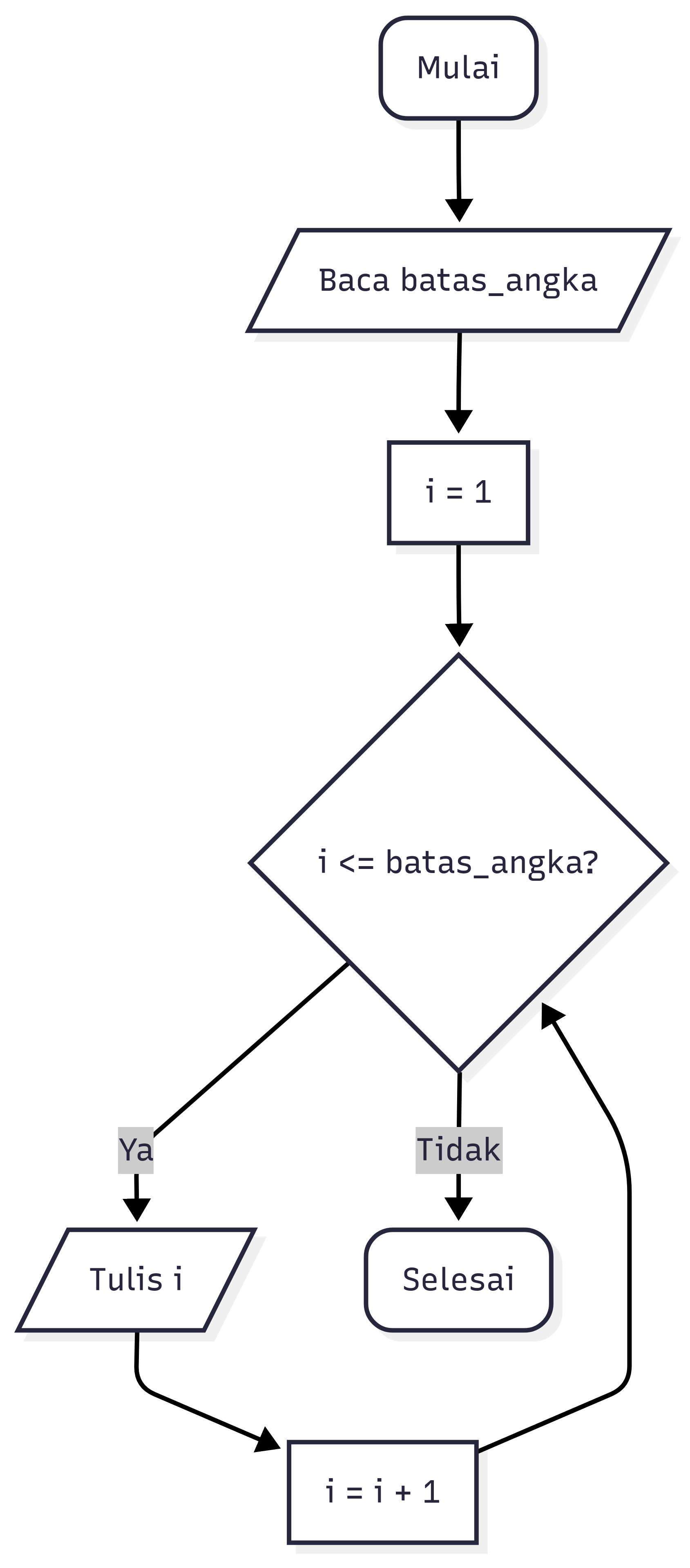 (Looping): Sebuah blok instruksi diulang berkali-kali sampai kondisi tertentu terpenuhi.